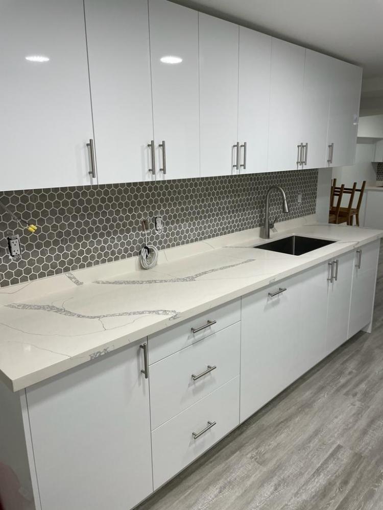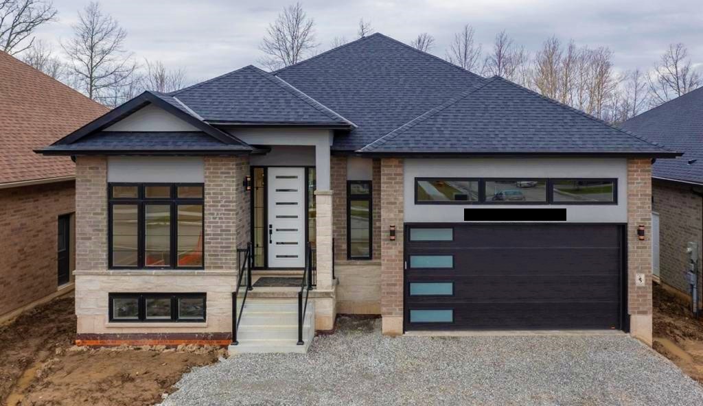 This full build custom home complete with high end finishes features a modern kitchen, living room, 3 bedrooms, and 2 bathrooms.